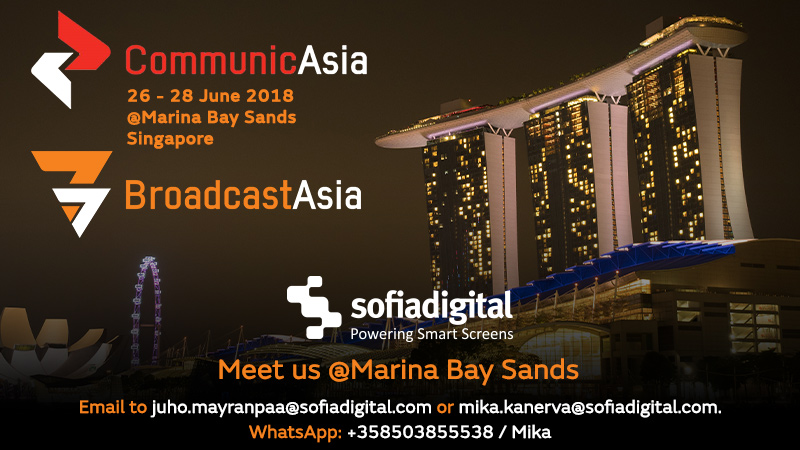 Sofia Digital representatives will be available at CommunicAsia & BroadcastAsia 2018 event in Singapore.